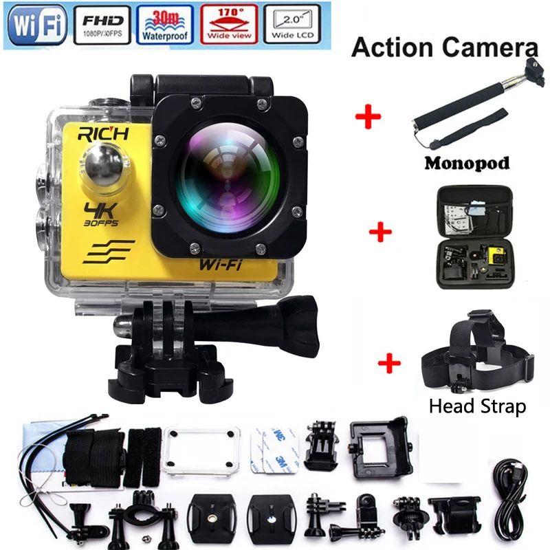 RICH F60 Ultra HD 4K WiFi 1080P Action camera DV Sport 2.0 LCD 170D lens go waterproof pro Hero Style camera Accessories :Click Here