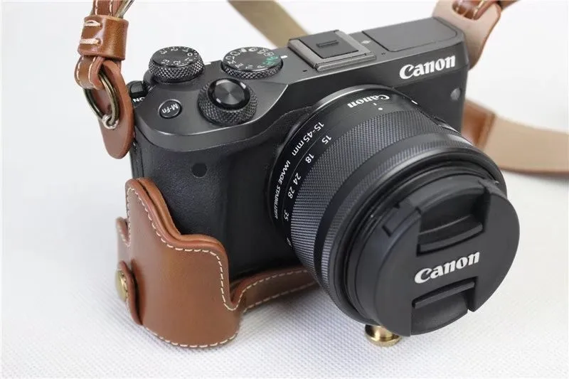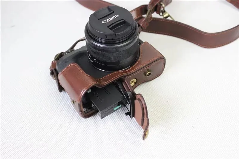 New Product Luxury Pu Leather Camera Case Bag For Canon EOS M6 EOSM6 15-45mm Open Battery Cover With Strap Arou