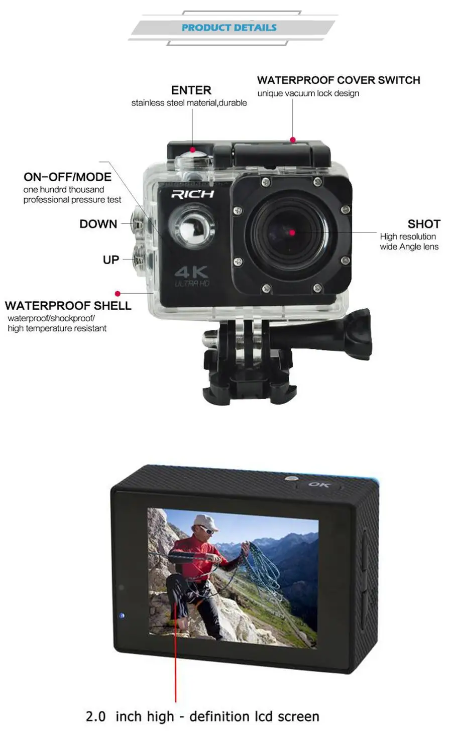 RICH Action camera F60 F60R Ultra HD 4K / 30fps WiFi 2.0" 170D go Helmet Cam pro underwater waterproof Sport camera for youtube :Click Here