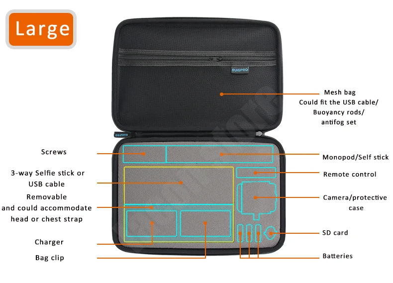 LANBEIKA For Gopro 3 Sizes Nylon Portable Storage Collection Bag Case for GoPro Hero 8 7 6 5 4 3+ SJCAM SJ5000 M20 SJ6 SJ7 EKEN :Click Here